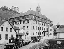Der Altbau ist ein elfachsiges Gebäude mit vier Geschossen. Es ist zurückhaltend gegliedert. Der zentrale Eingang wurde später an die Seite und in den Neubau verlegt. Die rückseitige Erweiterung wurde in den Hang des Tals hineingebaut. Durch diese Baumassnahme entstand auch der Lichthof. Das vierte Geschoss hat einen Fusswalm und ist mit Schindeln verkleidet. Das Walmdach zeigt strassenseitig fünf Fledermausgauben und trägt den mit Kupferblech verkleideten Dachreiter. Er ist mit einer Turmuhr ausgestattet.