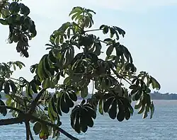 - ↑ L. Ake Assi: Cecropia peltata Linne (Moracees): ses origines, introduction et expansion dans l'est de la Cote d'Ivoire. In: Serie A. Sciences Naturelles. Band 42. Institut Fondamental d'Afrique Noire, 1980, S. 96–102.