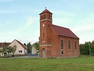 - Die Dorfkirche Mützdorf ist eine neoromanische Saalkirche aus dem Jahr 1880. Im Turm hängt eine Glocke aus dem Jahr 1746.