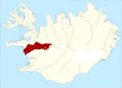Es umfasst den Strand vom Borgarfjörður über das Sumpfland Mýrar bis zum Hof Brúarfoss, reicht von da nach Nordosten bis zum See Hítarvatn, wo es einen Knick macht und sich von da nach Osten erstreckt über den Pass Brattabrekka bis zum Berg Tröllakirkja auf der Holtavörðuheiði, über die Arnarvatnsheiði, wo die Grenze nördlich des Úlfsvatn verläuft bis zu den Fljótsdrög auf der Nordwestseite des Gletscherschildes Langjökull.