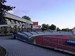 | Die Haupttribüne im Městský stadion v Horním parku (Juni 2020) | ||