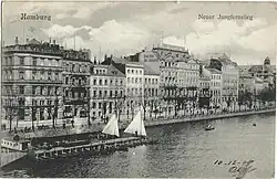- ↑ a b Vergleiche etwa die postalische Datierung von 1901 auf der Adressseite der mit der Nummer 377 als Mondscheinkarte fortlaufend nummerierten Ansichtskarte aus dem Hamburger Verlag. Eine fotografische Ansichtskarte mit der Lübecker Synagoge, Nr. 3252, abgestempelt am 10. Juni 1900, in vintage-germany.de.
