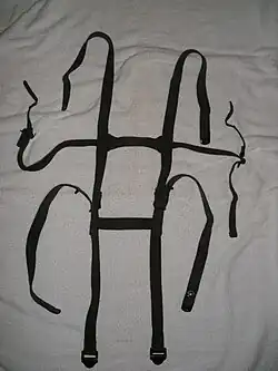 Dient dazu, das M1956 oder M1961 Field Pack an den Suspenders anzuhängen. Die Riemen werden durch die Laschen am Joch und die rechteckigen Metallösen gezogen. Zwei Schnapphaken dienen dazu, die Kampftasche anzuhängen.