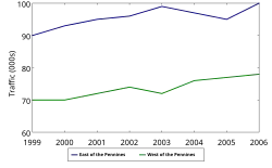 - ↑ a b Road traffic data tables. (XLS, 16 kB) In: Road Statistics 2006: Traffic, Speeds and Congestion. Department for Transport, 26. Juli 2007, archiviert vom (nicht mehr online verfügbar) am 30. Juli 2008.