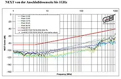 MMC 3000pro / ELine 1200 EC7 ist für Anwendungen nach Klasse FA oder höher konzipiert. Das NEXT weist selbst bei 1GHZ noch große Reserven auf. Durch das Kammersystem werden verschiedenste Übersprechens-Arten verhindert, wie das Fremdübersprechen. Das Fremdübersprechen (engl. Alien Crosstalk) wird mit >120 dB (Faktor 1.000.000) gedämpft. Die Kopplungsdämpfung erfüllt die zusätzlichen Anforderungen nach Klasse FA.