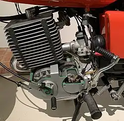 Ausschließlich für die Exportmärkte wurde erstmals serienmäßig eine Variante mit Getrenntschmierung produziert. Der Behälter für das Motorenöl mit 1,3 l Fassungsvermögen sitzt auf der linken Seite unmittelbar unterhalb des Seitendeckels. Die Frischöldosierpumpe ist in einem Raum innerhalb des Kupplungsdeckels untergebracht, der wiederum mit einer separaten Abdeckung versehen ist. Die Fördermenge wird über einen mit dem Gasdrehgriff verbundenen Seilzug lastabhängig verstellt.[4][5]