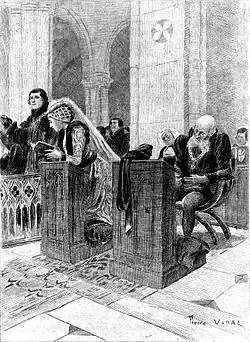 Die Novelle beginnt mit der Beschreibung der Stimmung am Ende der Messe am Allerheiligen-Feiertag 1479 in der Kathedrale von Tours, als die Menge aufbricht und die letzten Orgeltöne verklingen. Ein Bürger verlässt seinen Platz; ein Edelmann, der auf dem Moment gewartet hat, beeilt sich, diesen einzunehmen und nun wenige Worte an die betende junge Frau neben ihm zu richten, Marie, die Comtesse de Saint-Vallier, deren Ehemann währenddessen schläft:
