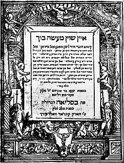 - Ma'assebuch (hebräischer Titel siehe Abb.). Sabbatai Bass, Dyhernfurth 1709[8]