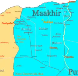 Die größten Orte im Gebiet Maakhir sind Badhan, Laasqorey, Dhahar, Buraan, Hadaaftimo, Hingalol, Damalla-Hagare, Eilbuh und Erigabo.