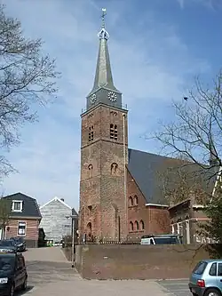 Die ursprünglich zu Ehren des heiligen Martin von Tours geweihte Kirche erhebt sich nach einer Erweiterung des Gotteshauses, bei der 1929 das einschiffige ältere Langhaus ersetzt wurde, auf kreuzförmigem Grundriss mit einem fünfseitigen geschlossenen Chor und einem dreiteiligen Turm. Der gotische Turm aus dem 15. Jahrhundert wurde im frühen 16. Jahrhundert erhöht und erhielt 1707 einen hölzernen Aufbau mit schlanker Spitze, der 1979 nach einem Brand wieder aufgebaut wurde. Im Turm hängt eine von Everardus Splinter 1640 gegossene Uhr. Nach der Zerstörung der Kirche um 1573 während der Belagerung von Leiden wurde der spätgotische Chor aus dem frühen 16. Jahrhundert 1606 restauriert. Bei der Restaurierung 1929 unter der Leitung von H. van der Kloot Meijburg wurden Langhaus und Querschiff in traditionalistischen Formen errichtet. Das Inventar umfasst eine Kanzel aus dem späten 17. Jahrhundert, ein Zehn-Gebote-Schild (1620), ein Textschild (1679) und ein Trauerschild (1784). Die Kirche enthält auch einen reich verzierten Grabstein für Cornelis Fannius († 1675) und eine Nische mit einer geschnitzten Urne für den Staatsmann I.J.A. Gögel († 1821).