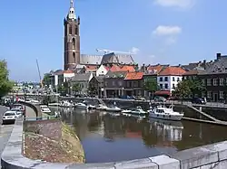 Der andere Mündungsarm, auch Hambeek genannt, mündet etwas weiter südlich vom Stadtkern in die Maas.