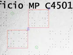 - ↑ Archivierte Kopie ( vom 14. Januar 2016 im Internet Archive) docucolor.cgi - CGI script to interpret Xerox DocuColor forensic dot pattern