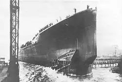 Für den unter der Bezeichnung „Ersatz Victoria Louise“ geführten Neubau, der aufgrund der Auflagen der Flottengesetze im Marinehaushalt als Großer Kreuzer geführt wurde, streckte die Werft am 30. Januar 1915 den Kiel. Der Stapellauf war ursprünglich für das Frühjahr 1916 vorgesehen. Durch die kriegsbedingte starke Beanspruchung der Werft sowie den eingetretenen Werftarbeitermangel ging der Bau jedoch nur langsam voran. So konnte der Stapellauf erst am 17. April 1917 im Rahmen einer kleinen Feier stattfinden. Nach einer Rede von Generaloberst Josias von Heeringen wurde der Neubau auf den Namen des an der Ostfront sehr erfolgreichen Generalfeldmarschalls August von Mackensen (1849–1945) getauft. Den Taufakt vollzog dabei dessen Gemahlin Dorothea.