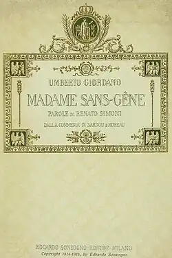 Madame Sans-Gêne ist eine Oper in drei Akten von Umberto Giordano mit einem Libretto von Renato Simoni.