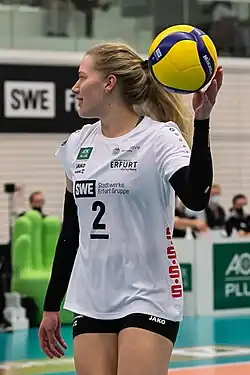 - ↑ a b c d Maddie Palmer verstärkt Aussenangriff. Schwarz-Weiss Erfurt, 18. Juni 2020, abgerufen am 8. Juli 2020.