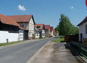 Die ursprüngliche, spätmittelalterliche Siedlung erstreckt sich, noch heute gut erkennbar, als Straßendorf entlang der Hauptstraße – heute Max-Kürschner-Straße – nördlich der Madel. Dieser Bach entspringt ca. 3500 Meter östlich in der Gemarkung des Nachbarortes Neukirchen am Gramberg und mündet, nach dem er den Nachbarort Krauthausen und das ehemalige Gut Lengröden passiert hat, bei Creuzburg in der Werra. In der Ortslage speist die Madel den Schlossteich. Höchste Erhebungen sind der bewaldete Moseberg im Süden (364 m ü. NN), der Lerchenberg (342 m ü. NN) im Nordosten auf der Gemarkungsgrenze zu Ütteroda und der bewaldete Eichelberg (349 m ü. NN) unmittelbar nördlich der Ortslage. Die geographische Höhe des Ortes beträgt 245 m ü. NN.[1]
