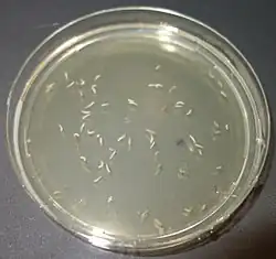 - ↑ Thomas S, Wynn K, Fowler T, Jones M: The effect of containment on the properties of sterile maggots. In: Br J Nurs. 11. Jahrgang, 12 Suppl, Juni 2002, S. S21–2, S24, S26 passim, PMID 12131859 (englisch).