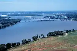 Die unter Denkmalschutz stehende Chain of Rocks Bridge führt über den parallel verlaufenden Mississippi. Seit die New Chain of Rocks Bridge fertiggestellt wurde, ist die alte Brücke für den Kraftfahrzeugverkehr gesperrt und nur noch für Fußgänger und Radfahrer passierbar.[3][4]