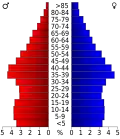 25,6 Prozent der Bevölkerung waren unter 18 Jahre alt, 9,4 Prozent zwischen 18 und 24, 31,5 Prozent zwischen 25 und 44, 22,7 Prozent zwischen 45 und 64 und 10,8 Prozent waren 65 Jahre oder älter. Das Durchschnittsalter betrug 36 Jahre. Auf 100 weibliche Personen kamen 95,3 männliche Personen und auf Frauen im Alter von 18 Jahren und darüber kamen 92,1 Männer.