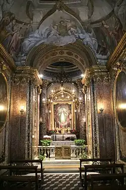 Im 18. Jahrhundert beauftragte Graf Gualtiero Marefoschi den Architekten Luigi Vanvitelli mit der Neugestaltung der kleinen Kirche. Vanvitelli verwandelte das Oratorium zwischen 1735 und 1741 durch einen vergrößerte Neubau in ein kostbares Kabinett, dessen Wände mit polychromem Marmor bedeckt und mit ionischen Pilastern verziert waren, während er in der Mitte des Bodens das Wappen der Familie Marefoschi platzierte. Oberhalb öffnet sich eine elliptische Kuppel mit Laterne. Das Deckengewölbe wurde von Francesco Mancini mit Fresken zur Himmelfahrt Mariens versehen, an den Wänden stellte er in vier Ovalen die Verkündigung, die Darstellung im Tempel, die Reinigung und die Heimsuchung dar. Zwei große Gemälde von Sebastiano Conca stellen links die Geburt und rechts die Unbefleckte Empfängnis dar.[2]