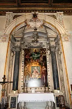 Der Innenraum wurde 1609 mit einer prachtvollen Decke im Stil des Frühbarocks versehen, deren Mittelfeld ein Madonnenbild enthält. Der Hochaltar steht auf der kürzeren Achse des Innenraums dem Eingang gegenüber. Er wird von korinthischen Pilastern flankiert und von einem Rundbogen überdacht, sodass die Fassadengestaltung in der Innenraumgliederung gespiegelt wird. Das barocke Altarbild von Alessandro Tiarini wird durch zwei korinthische Säulen flankiert, die einen verkröpften Segmentgiebel tragen. In das barocke Altarbild ist ein Gnadenbild des 14. Jahrhunderts eingelassen, eine Madonna mit Kind, die sich ursprünglich im Dom von Pescia befand. Eine Kartusche über dem Altar enthält die Inschrift FONS GRATIARUM – „Quelle der Gnaden“.