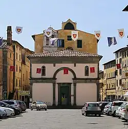 Die Kapelle gehört zu den wenigen vorreformatorischen Querkirchen. Sie wurde 1447 nach Plänen von Andrea Cavalcanti, einem Adoptivsohn Filippo Brunelleschis, errichtet. Das Bauwerk besteht aus einem quergerichteten Quader, der von einem flachen Walmdach und einem Biforen-Glockenjoch bekrönt wird. Das Glockenjoch ist mit dem an die Kirche angrenzenden Profanbau verbunden. Die Platzfassade ist zweistöckig gegliedert und durch vier korinthische Pilaster in drei Achsen unterteilt. In der Mittelachse, die das Portal enthält, wird das Gebälk zugunsten eines Rundbogens unterbrochen, sodass die gesamte Fassade als Variation des Serliana-Motivs erscheint. Das Obergeschoss weist in den äußeren Achsen je ein Rundbogenfenster auf und wird durch ein mächtiges Gebälk mit Eierstab- und Zahnschnittfries abgeschlossen. Die dreiachsige Gliederung wird im Obergeschoss durch zwei Volutenkonsolen unterhalb des Gebälks lediglich angedeutet. Die Seitenfassaden greifen die Gestaltung der Hauptfassade in schmalerer Anordnung auf.
