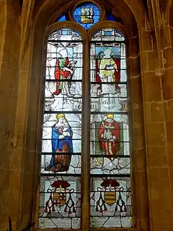 Das zweigeteilte Fenster im Chor ist drei Meter hoch und 1,60 Meter breit. Es stammt aus einer unbekannten Werkstatt. Es stellt in der Mitte links Maria mit dem Jesuskind und daneben den heiligen Dionysius von Paris, der seinen Kopf in den Händen hält, dar. Darüber ist links der Apostel Petrus mit Schlüssel und rechts der heilige Stephanus mit Märtyrerpalme zu sehen. Den unteren Abschluss bilden die Wappen des Kardinals Adrien Gouffier de Boissy, der vermutlich das Fenster gestiftet hat.
