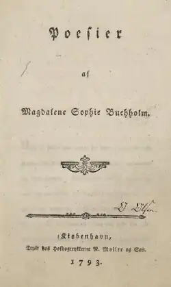 - ↑ a b c d e f g D. Thrap: Buchholm, Magdalene Sophie in: C. F. Bricka (Hrsg.): Dansk Biografisk Lexikon tillige omfattende Norge for Tidsrummet 1537–1814. 3. Band Brandt–Clavus. Gyldendal, Kjøbenhavn 1887–1905, Seite 218. Digitalisat im Projekt Runeberg