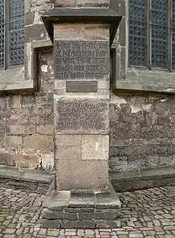 - ↑ Tilemann Elhen von Wolfhagen, Limburger Chronik, Kapitel 9. in: Deutsche Chroniken und andere Geschichtsbücher des Mittelalters 4,1: Die Limburger Chronik des Tilemann Elhen von Wolfhagen. Herausgegeben von Arthur Wyss. Hannover 1883, S. 28–28 (Monumenta Germaniae Historica, Digitalisat)