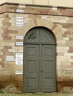 - ↑ Laut der Markierung am alten Fahrtor betrug der Wasserstand „25 Fuß rheinisch“. Eine entsprechende Hochwassermarke ist heute am Eisernen Steg zu sehen. Nach einer lateinischen Inschrift in der im Zweiten Weltkrieg zerstörten Weißfrauenkirche stand das Wasser dort „sieben Schuh“ hoch, das entspricht etwa zwei Metern.