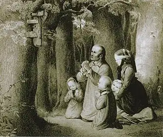 In der Magdeburgischen Zeitung wurde im Jahr 1840 ein sentimentales Gedicht Wilhelm Ribbecks über eine vom Magdeburger Kunstverein verbreitete Lithographie Betende Bauernfamilie im Walde veröffentlicht. In dem Gedicht wurde ein Gebet zum „lieben Heiland Jesus Christ,/ der aller Not Erbarmer ist“ empfohlen. Hiergegen bezog der Pfarrer der Magdeburger Heilig-Geist-Kirche, Wilhelm Franz Sintenis, öffentlich in einem Zeitungsartikel Stellung.