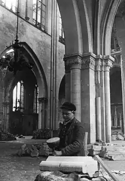 Nur die östlichen Partien mit Chor, Chorumgang und Chorempore blieben während der Bombardements gänzlich erhalten. Besonders wertvolle Teile der Ausstattung waren durch Auslagerung oder Einmauerung gerettet worden.[51]