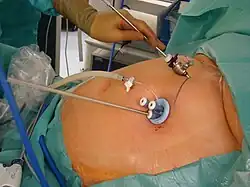 Durch Einengen des Magendurchmessers im Eingangsbereich kann eine dauerhafte deutliche Gewichtsreduktion erreicht werden. Hierzu wird in einer laparoskopischen Operation ein verstellbares Silikonband um den Magenfundus gelegt. Der Durchmesser der Öffnung ist durch Auffüllen des Bandes mit Flüssigkeit veränderbar, ein entsprechender Zugang (Portkammer) wird in der Bauchwand oder vor dem Brustbein platziert.