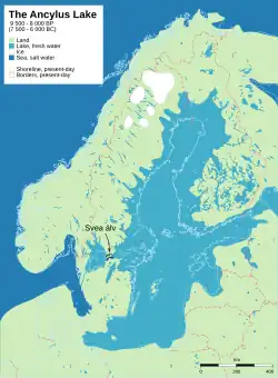 - ↑ Ancylussjön – fortfarande ett mysterium. Havsutsikt 3, 2003, 8–9. and Var gick vattnet, Arkeologisk Information nr 3, Riksantikvarieämbetet & Östergötlands länsmuseum