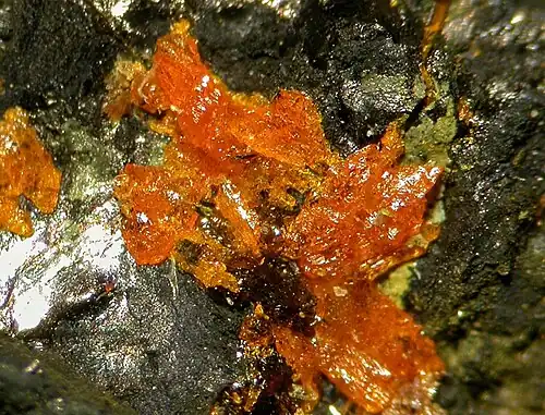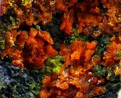 - ↑ Anthony Kampf, Barbara P. Nash, Joe Marty, John M. Hughes: Mesaite, CaMn2+5(V2O7)3·12H2O, a new vanadate mineral from the Packrat mine, near Gateway, Mesa County, Colorado, USA. In: Mineralogical Magazine. Band 81, Nr. 2, 2017, S. 319–327, doi:10.1180/minmag.2016.080.095 (englisch).