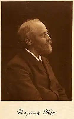 - Magnus Blix. In: Bernhard Meijer (Hrsg.): Nordisk familjebok konversationslexikon och realencyklopedi. 2. Auflage. Band 3: Bergsvalan–Branstad. Nordisk familjeboks förlag, Stockholm 1905, Sp. 700 (schwedisch, runeberg.org).
