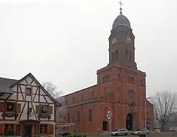 - Die 1687/89 erneuerte Katharinenkapelle mit ihrem achteckigen Grundriss, heute evangelische Pfarrkirche, mit einer weitgehend aus dem 18. Jahrhundert stammenden Ausstattung