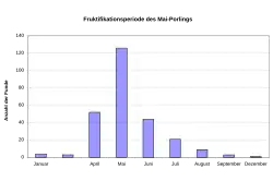 Die Fruchtkörper erscheinen etwa von Mitte April bis Mitte Juli – ein Vergleichshistogramm zum Winter-Stielporling findet sich bei Jahn.