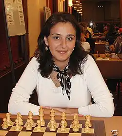 - ↑ In einem Interview von Dezember 2000 sagt sie, dass sie den IM-Titel hat, laut FIDE-Webseite wurde dieser jedoch erst auf dem FIDE-Kongress 2003 beantragt, siehe http://ratings.fide.com/title_applications.phtml?pb=3.