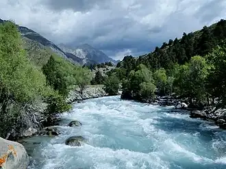 Der Flusslauf des Maidantal auf kasachischer Seite liegt innerhalb des Aqsu-Schabaghyly-Naturreservats.