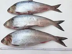 Maifisch, adult (Präparat) und Jungfische, gefangen 2010 bei Grieth | ||||||||||||