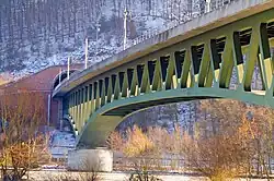 Die Widerlager wurden mit Buntsandstein verkleidet, um den optischen Eingriff in die Landschaft zu dämpfen.[1]