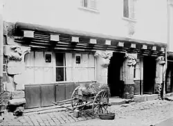 Das dreigeschossige Fachwerkhaus entstand im 16. Jahrhundert. Bemerkenswert sind die im Erdgeschoss befindlichen vier steinernen Pfeiler, die mit üppigem Figurenschmuck verziert sind. Die Eingangstür ist beidseitig von den Pfeilern gerahmt. Links und rechts des Eingangs sind Ladengeschäfte angeordnet. Auch an den Ecken befinden sich die gestalteten Pfeiler. Die Fassaden der oberen Geschosse sind als Sichtfachwerk gestaltet.