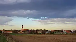 - Umgeben ist die Kirche vom alten Dorffriedhof mit teilweise erhaltenen Gräbern aus deutscher Zeit.
