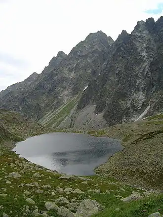 | Malé Hincovo pleso, mit dem Berg Satan im Hintergrund | ||