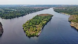 Mala Chortyzja ist die kleinere Nachbarinsel von Chortyzja und wie diese Teil des Nationalen Sapowednik Chortyzja.[1]