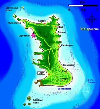Die Insel zählt rund 5000 Einwohner. Das Barangay Logon besteht aus neun Dörfern: Logon (Hauptstadt), Tawigan, Pasil, Indonacion, Kabatangan, Bakhaw, Bool, Langob und Guimbitayan.