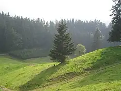 Der Stein befindet sich wahrscheinlich an der ursprünglichen Stelle. - Stein Nr. 5: von dieser Rottannen hinumb bey einer langen bezaichneten forchin (Föhre)