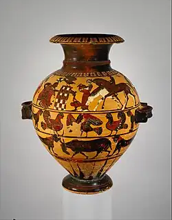 - John Boardman: Schwarzfigurige Vasen aus Athen. Ein Handbuch (= Kulturgeschichte der Antiken Welt. Bd. 1). Philipp von Zabern, Mainz 1977, ISBN 3-8053-0233-9, S. 39–40.