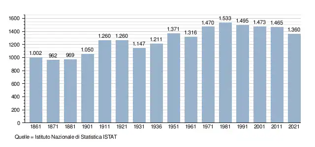 - ↑ Bilancio demografico e popolazione residente per sesso al 31 dicembre 2024. ISTAT. (Bevölkerungsstatistiken des Istituto Nazionale di Statistica, Stand 31. Dezember 2024).